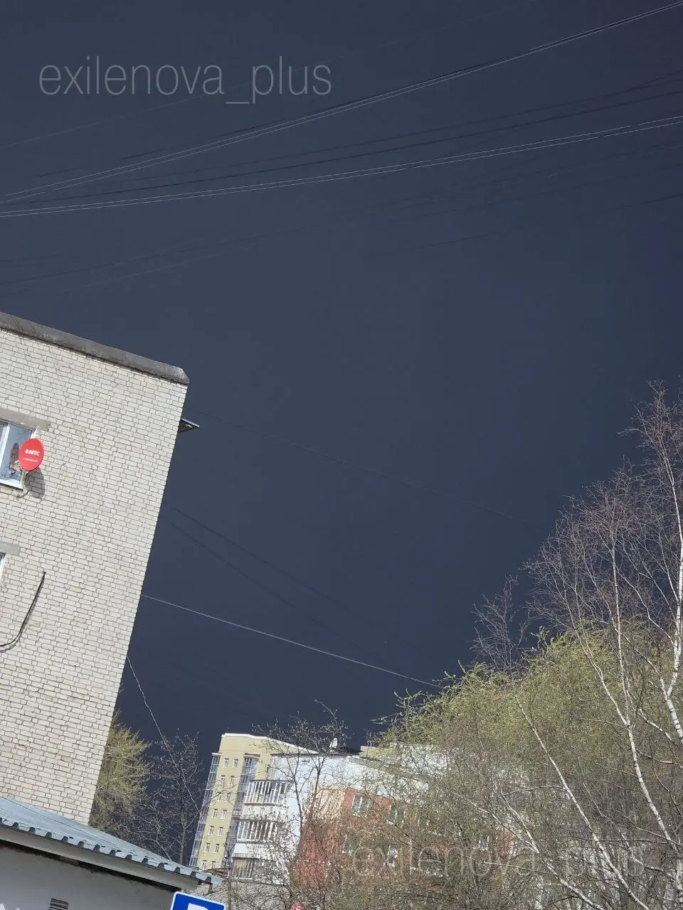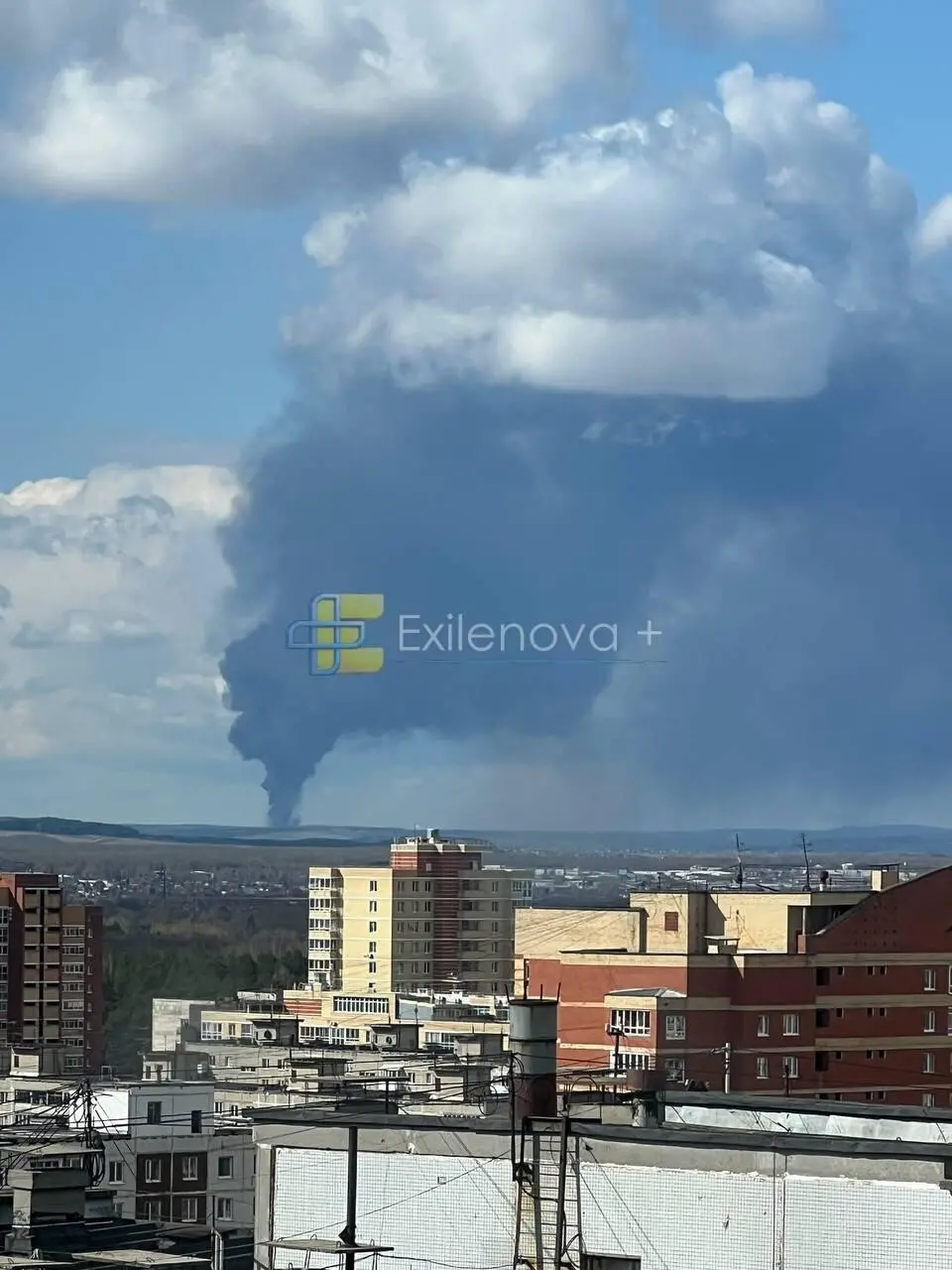 Водночас з міста, що за півтори тисячі кілометрів від кордону України, публікують фото із величезним стовпом диму, що закрив небо.