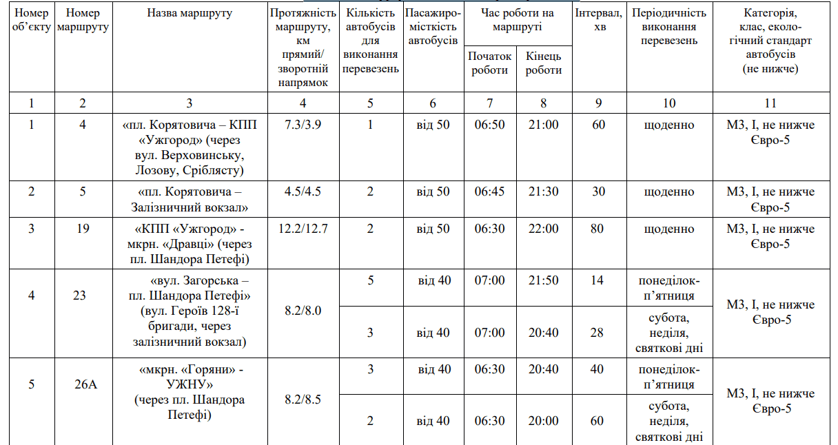 ОГОЛОШУЄТЬСЯ КОНКУРС з перевезення пасажирів на міських автобусних маршрутах загального користування