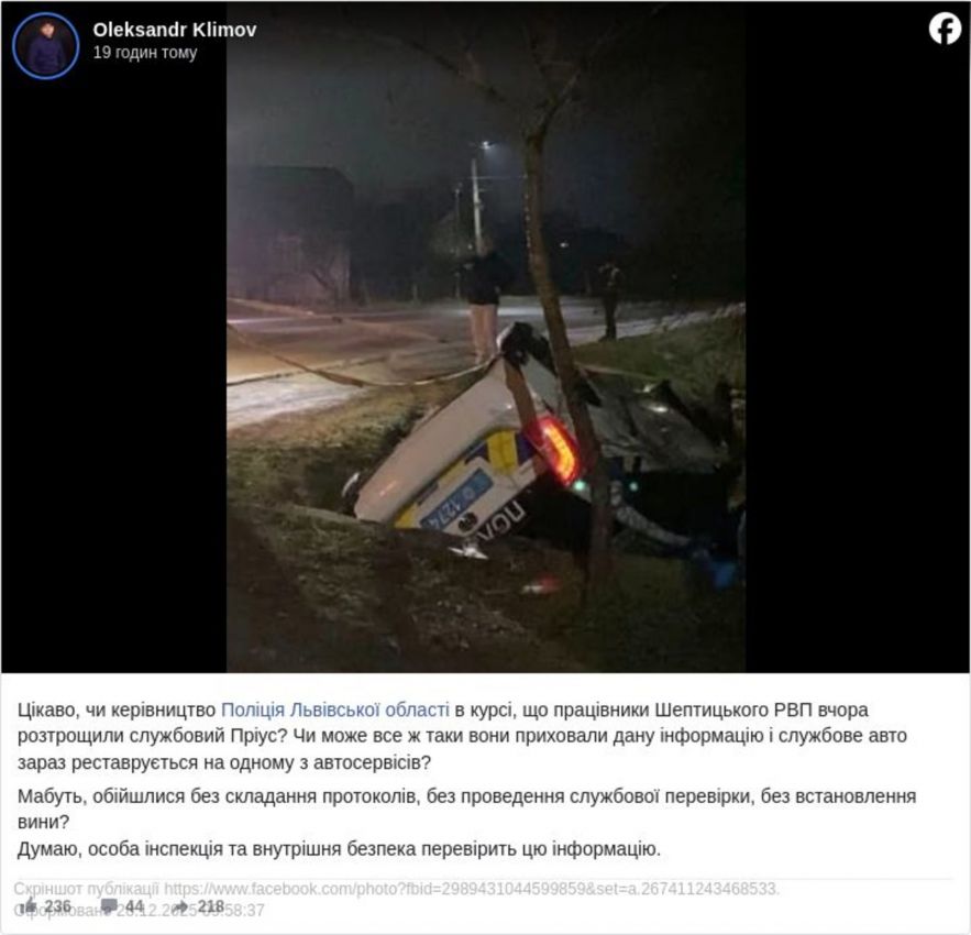 На Шептиччині затримали водія за ДТП у стані сп’яніння