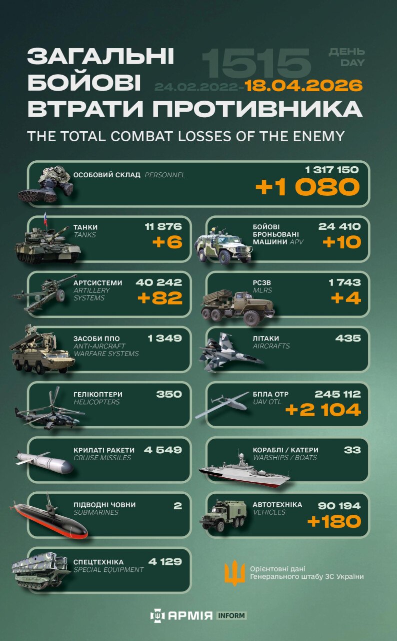 21 Кві. 2026 р. 17:41 21 квітня 2026 р. 17:41Ворог найбільше тисне на Покровському і Костянтинівському напрямках: яка ситуація на фронті